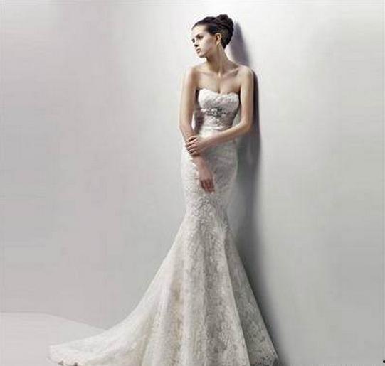鱼尾裙:优雅高贵,适合身材高挑的新娘。搭配一款简约的项链,就能展现出新娘的优雅气质。